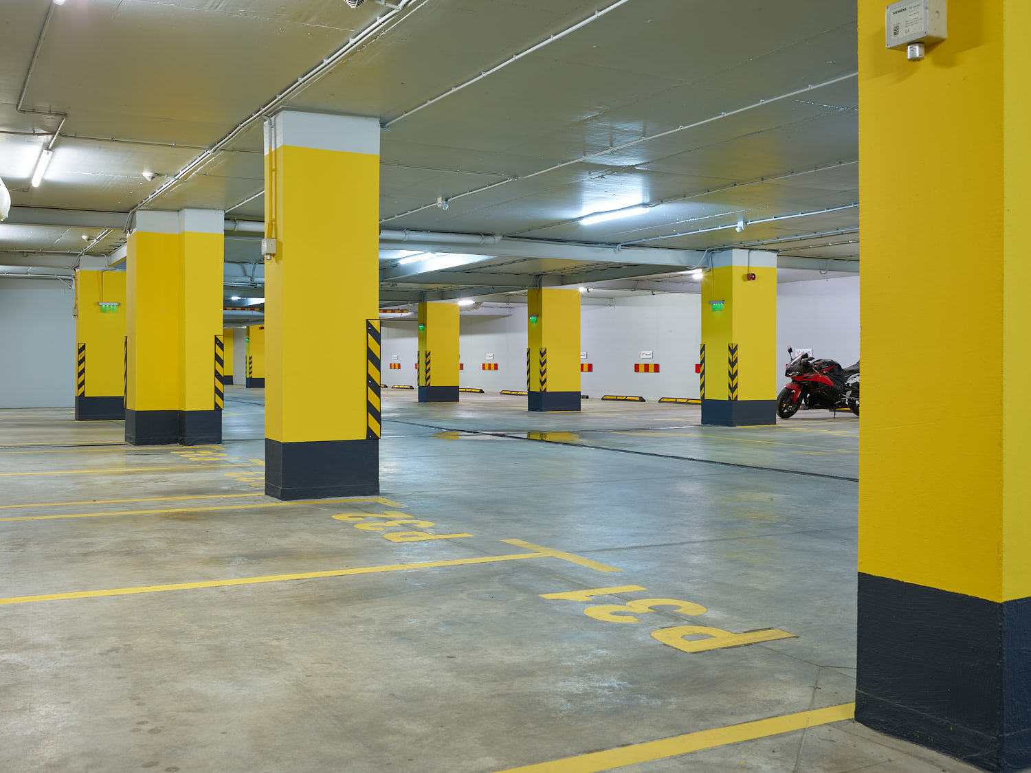 На разположение са две подземни нива с общо 50 паркоместа за наематели и гости. Паркинг зоната е оборудвана с пожароизвестителни системи, модерна вентилация и се охранява чрез видеонаблюдение и контрол на достъпа.